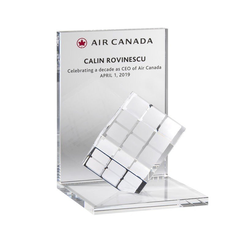 Crystal cubes are a popular option for many deal toy and award designs. It’s not hard to understand their appeal. They combine the elegance of crystal with the subtlety of a simple geometric shape. What tends to be far less known and appreciated is the range of design possibilities offered by “basic” cube designs. There are, in fact, a number of techniques and features available within the “simple but elegant” effect that Crystal promises—and that most clients are seeking.