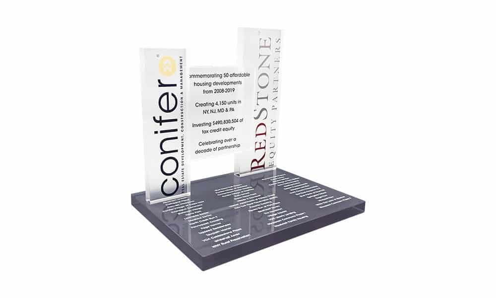 And during that time, we’ve learned not to be too literal-minded. We recognize that clients requesting “Lucites” might actually want (or be better suited for) commemoratives in crystal, wood, or some other material. And that clients requesting “cubes” are necessarily insisting on a design with six square faces.