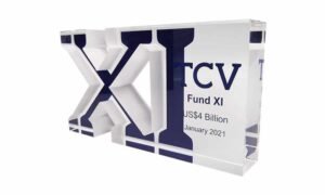 The addition of a base opens up another creative avenue for cube designs. Several of the pieces below (such as the Blackstone fund launch commemorative) involve the addition of a simple offsetting black base. Some of the other designs are more elaborate. The green motherboard-patterned base also featured here provides some contrasting color to the overall design. But it also conveys unmistakably the focus of the investment fund whose successful launch is being celebrated: the technology sector.
