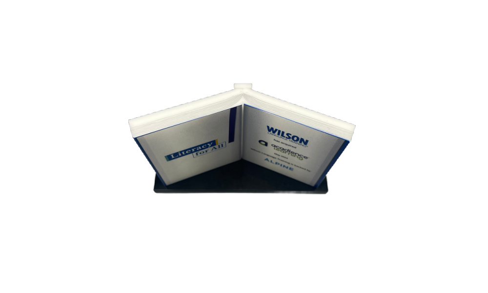 (22AZH030)Crystal financial tombstone commemorating the acquisition of Acadience Learning, a company focused on early literacy assessments. (24AKL208)