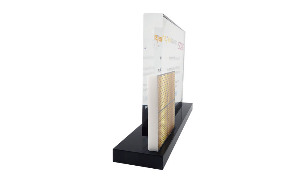 Finally, in addition to deal toys, you’ll also find pieces related to these sectors but not related to a financial transaction. These include, for example, a wafer-themed employee recognition award designed for a semiconductor firm, and custom awards celebrating such achievements as production launches and patent applications and grants.