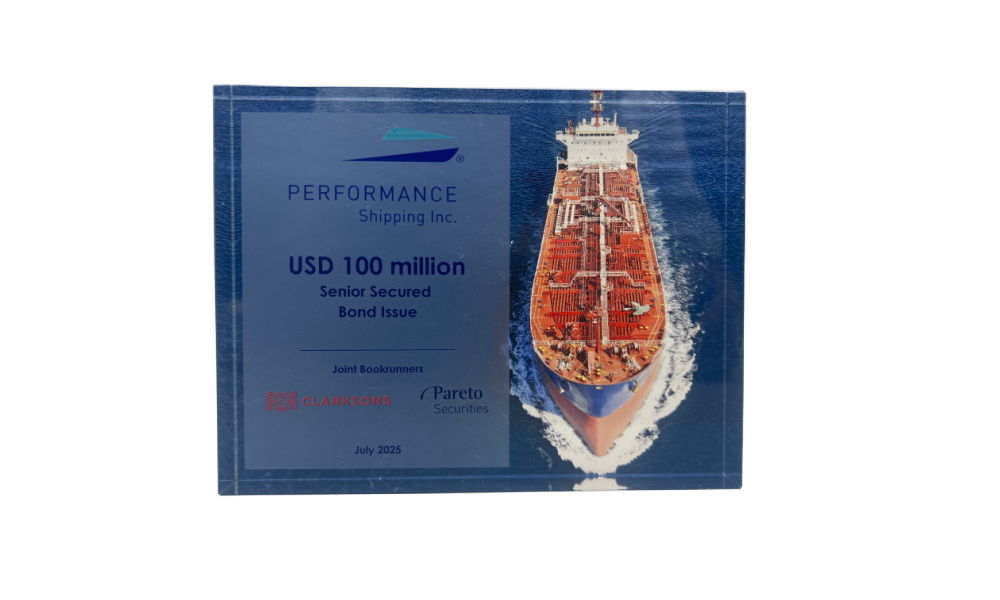 Crystal deal toy celebrating the successful issue on the Oslo Stock Exchange of bonds by Performance Shipping, an Athens-based tanker vessel operator. (25lNL173)