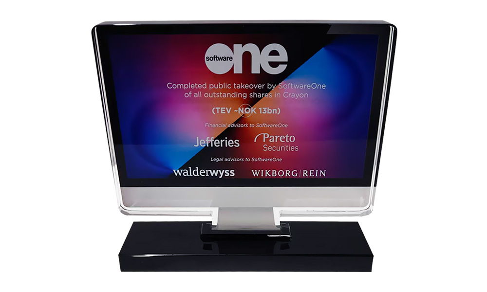 Crystal deal tombstone recognizing the acquisition of Crayon, a Norwegian software company. (25LNL148)