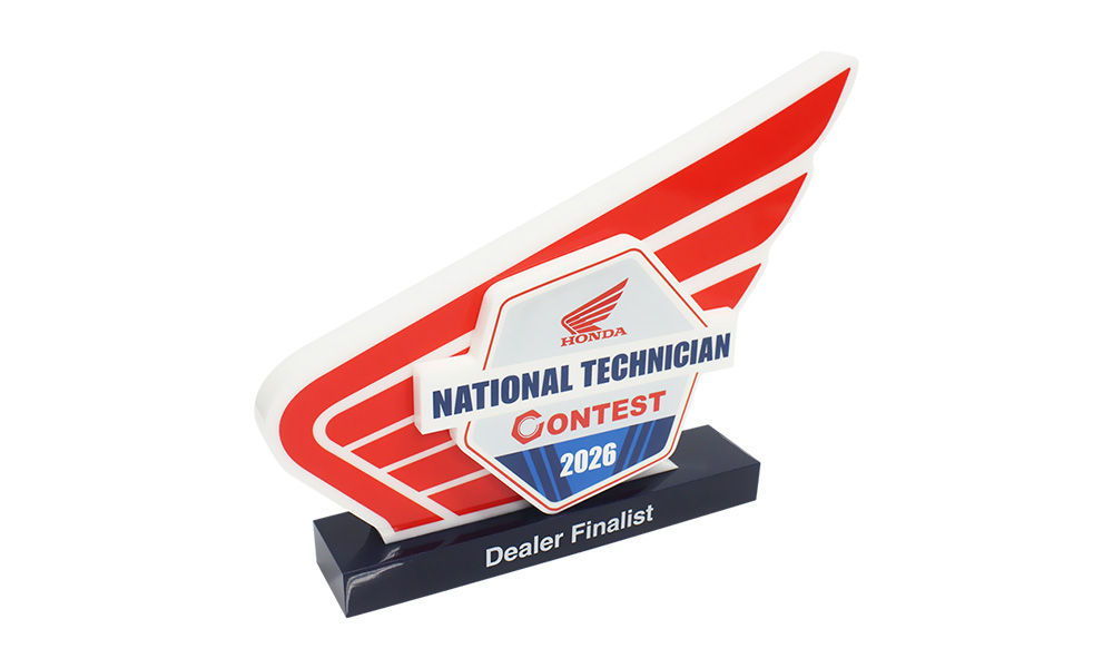 Logo-themed Custom Lucite award presented to winners of Honda’s annual National Technician Contest. The event recognizes Honda’s Powersports technical training programs. (25ALJ175)