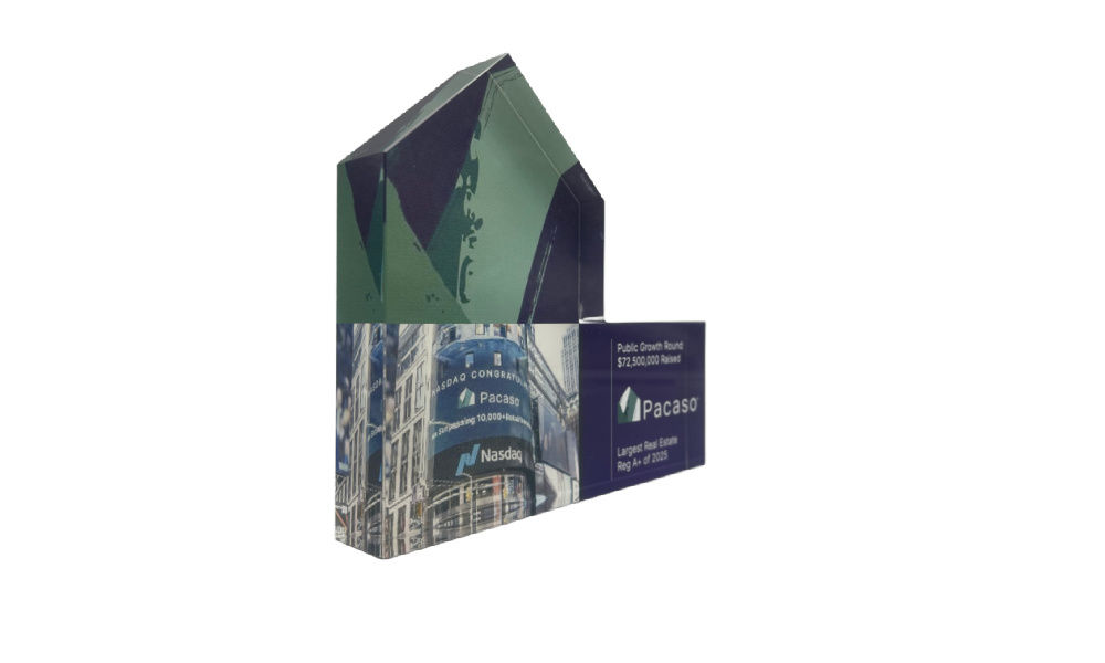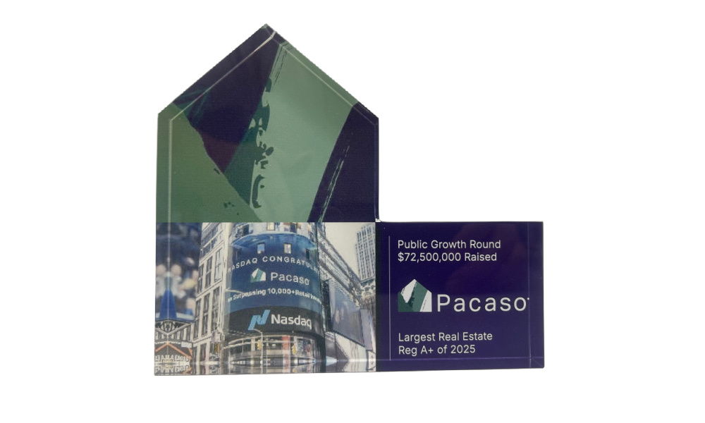 Crystal financial tombstone marking a qualified growth fund for Pacaso, a tech-enbabled marketplace for luxury vacation homes. (25ALJ244)