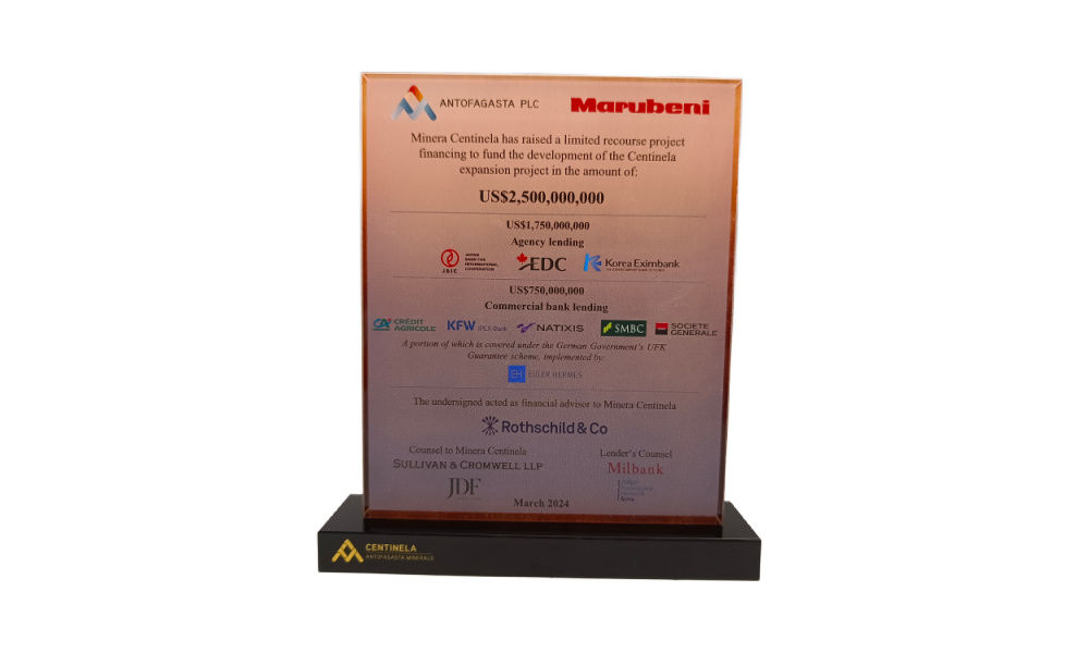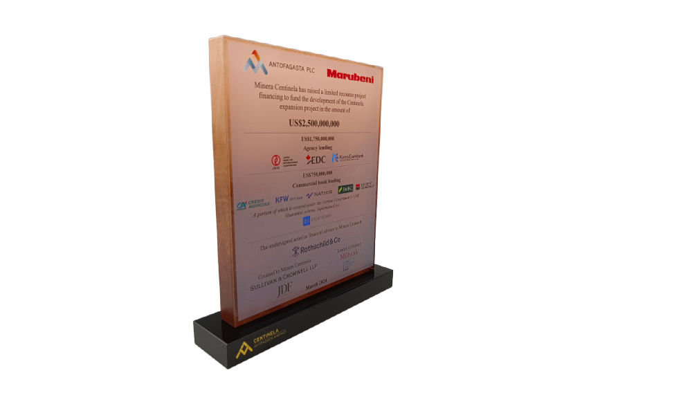 Crystal deal toy recognizing financing provided by a group of international lenders to Minera Centinela, a Chilean copper mine. (24AZH092)